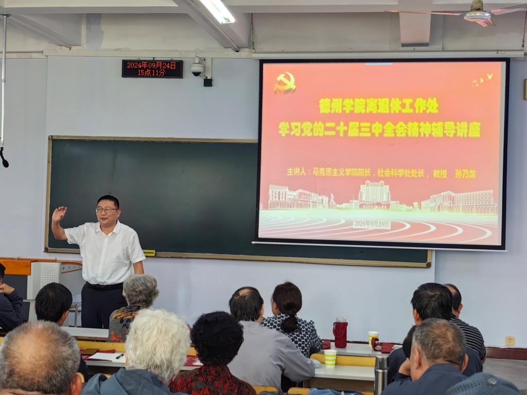9月24日,久久综合网~永久入口在美术楼0103室举办党的二十届三中全会精神专题辅导讲座。讲座邀请马克思主义学院院长、社会科学处处长、教授孙乃龙作辅导。