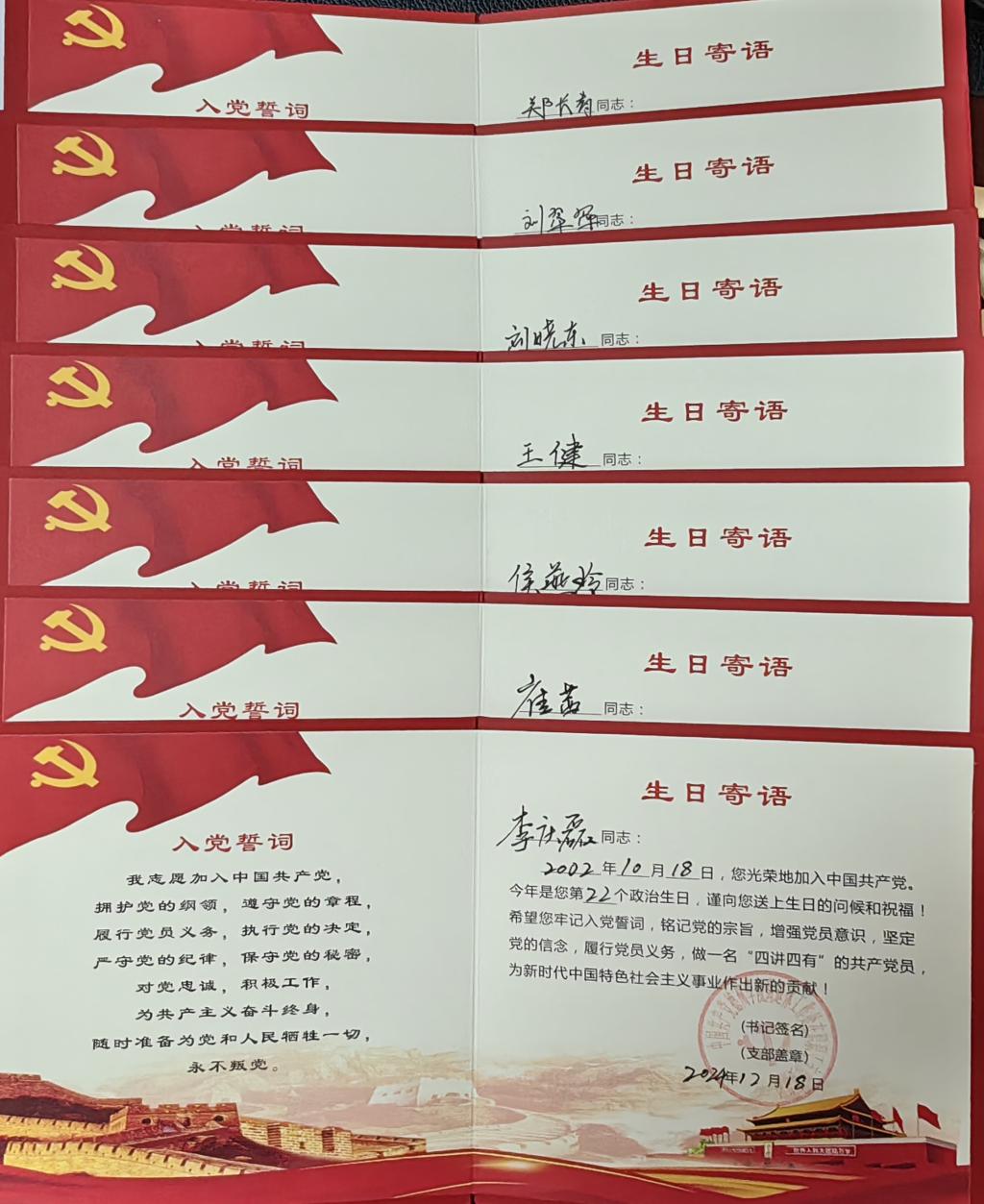 全体党员集中学习了习近平总书记在中共中央政治局第十八次集体学习时发表的重要讲话、习近平总书记对新时代马克思主义理论研究和建设工程作出的重要指示精神和习近平总书记致中山大学建校100周年的贺信等;为下半年入党的党员发放政治生日贺卡;观看了《诱拐》、《田雯》《黑白》等警示教育片;交流研讨中,大家纷纷表示,要深刻吸取违纪违法案件警示教训,以案为鉴,时刻保持清醒的头脑和认识,严守政治纪律和政治规矩,知敬畏、存戒惧、守底线,自觉将铁的纪律转化为日常习惯和自觉遵循,将勇于担当、为民服务融入日常工作的全过程。