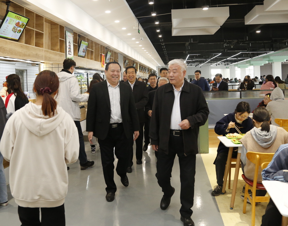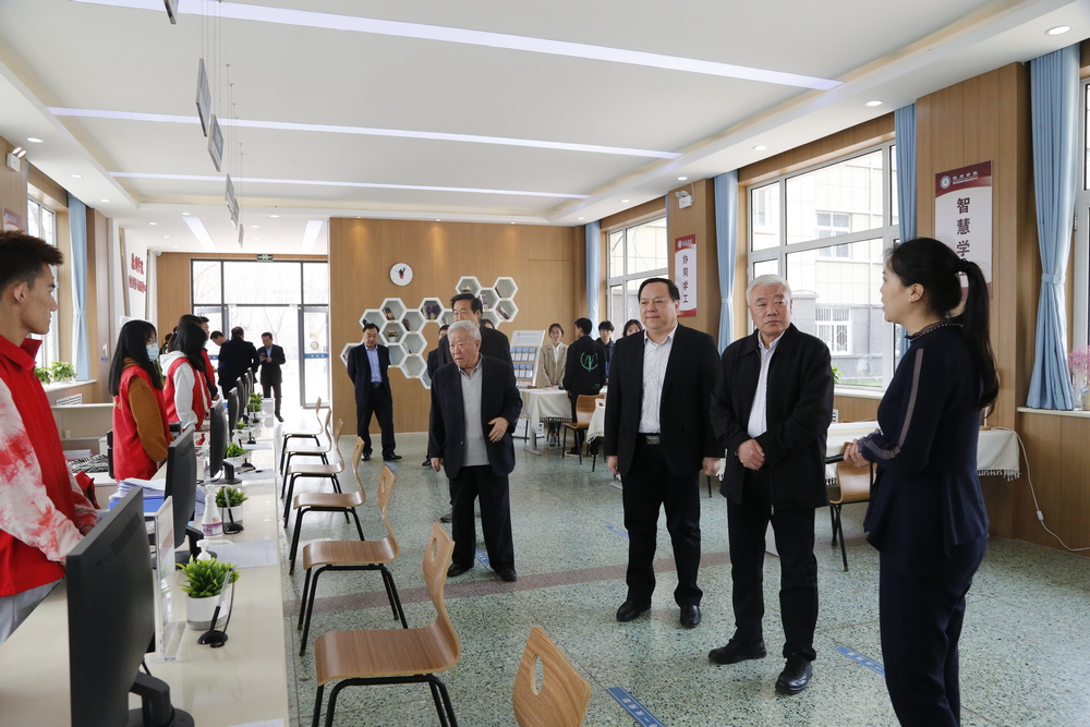 座谈会后,张海泉一行调研考察了大学生事务中心、第四食堂和七点创业谷。