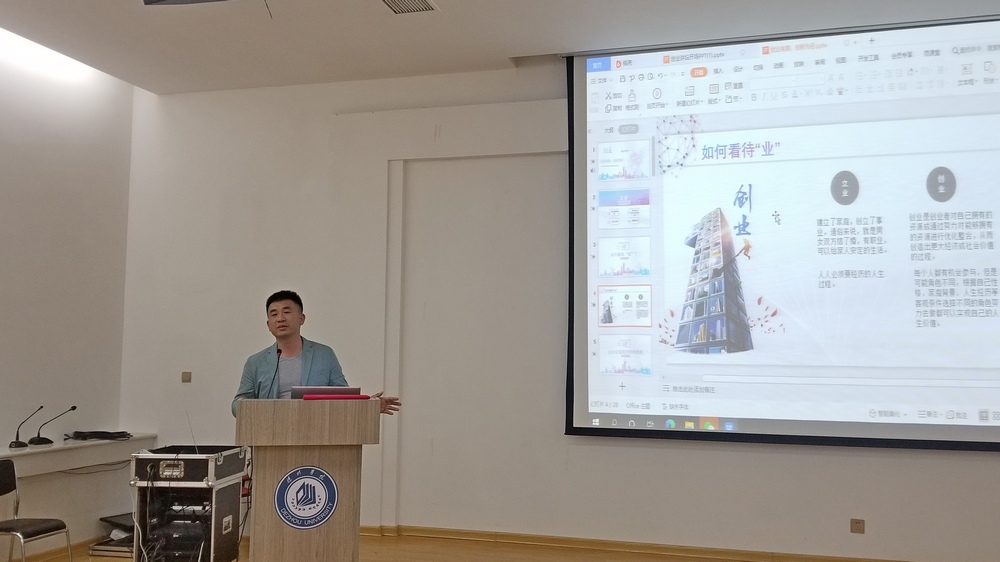 庞健告诫同学们创业并非易事,在创业时要选择一个正确方向,一定要坚定信心,踏实肯干,以创新的思维行创业之事。