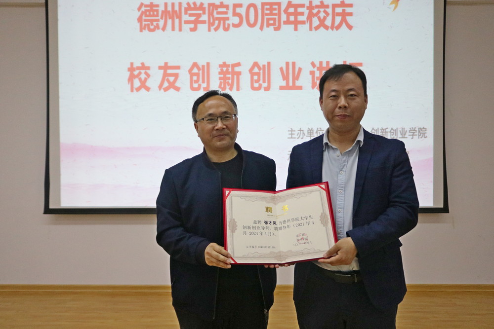 计算机与信息学院负责人为张才风校友颁发了德州学院创新创业导师聘书。