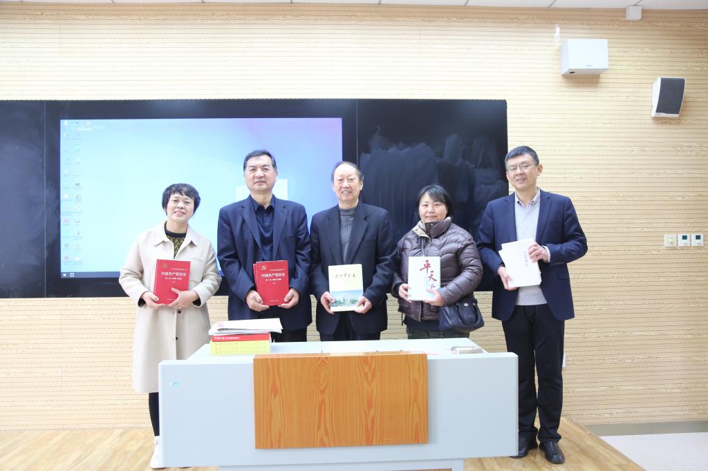 校关工委考察了校园环境、教室、陶艺活动室、报告厅、实验楼、图书馆等设施,与明诚学校负责人进行了深切交谈,对目前学校开展的党史教育表示赞赏,讨论德州学院关工委与德城区明诚学校如何进一步合作开展以党的二十大精神宣讲为中心的党史、法治、家风等宣讲活动,同时提出,要进一步将党史教育与中华优秀传统文化教育结合起来,用青少年熟悉的语言、事例、喜闻乐见形式开展。向明诚学校赠送党史教育课件和《中国共产党历史》《习近平讲故事》《习近平的七年知青岁月》等学习资料。