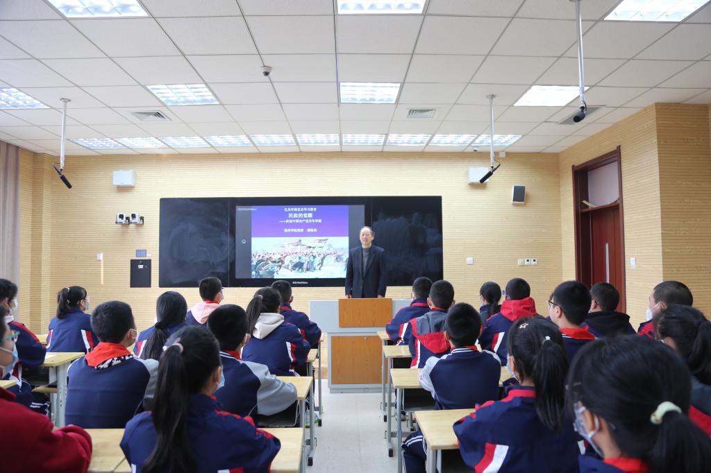 德州学院关工委“五老”志愿者胡俊海为学校七年级的学生讲授党史教育课——《民族的觉醒》,课程运用了图片、故事等方式讲述了党诞生的光辉历程。