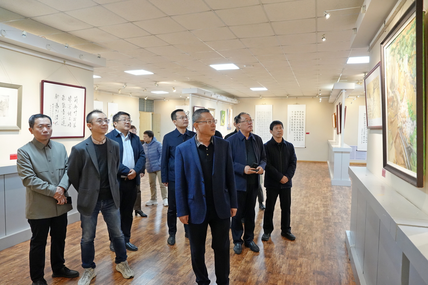 11月8日上午,校领导吴君、张存峰、蒋涛涛、杨斌、冯琨到美术楼一楼展厅参观校关工委主题书画展。