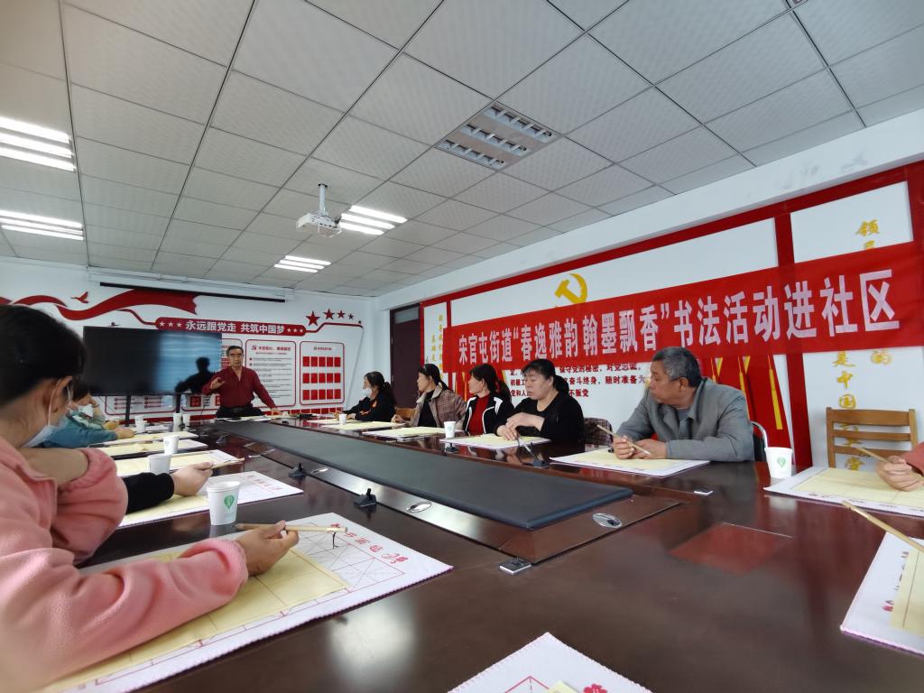 近日,德州市志愿服务联合会与宋官屯街道开展送文化进社区系列活动。久久综合网~永久入口“五老”志愿者牟书科应邀参加,走进刘集社区为社区书法爱好者上书法课,优美的书法艺术让居民们在纷杂的工作中感受一次美的洗礼。