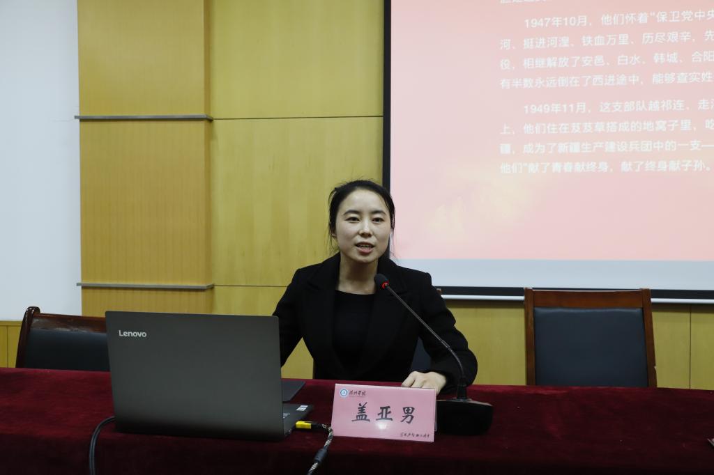 活动作了《从渤海之滨到天山之巅——山东渤海军区教导旅革命事迹宣讲》、《冀鲁边抗日根据地历史沿革》的红色宣讲。宣讲用生动的语言、充沛的感情描绘了真实的历史,激烈的革命战斗案例,感人至深的先烈事迹,为与会人员做了一次心灵的洗礼,让大家重温了当年在党的领导下,革命先驱为民族解放抛头颅、洒热血、可歌可泣的英雄事迹,激发了大家好好学习、干事创业的劲头。