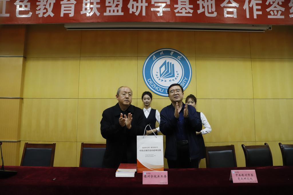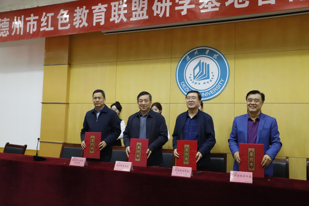 活动中市关工委、校关工委签署了《合作协议》,市关工委、市委党史研究院、市文化和旅游局、校关工委四方共建《德州市红色教育联盟研学基地合作协议》,市委党史研究院、德州学院马克思主义学院签署了《共研德州红色文化框架协议》;市委党史研究院向德州学院关工委赠送近年出版的党史书籍近百册;为首批德州市红色教育联盟研学基地单位(德州市革命烈士陵园、乐陵市冀鲁边区革命教育基地、山东渤海军区教导旅革命传统教育基地、临邑县王为民事迹展览馆)授牌。