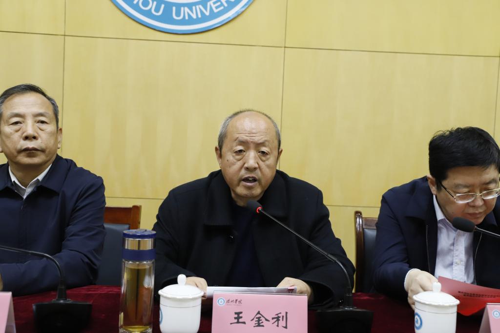 王金利在致辞中介绍了学校的发展历程、办学特色和校关工委组织建设、特色活动等。他指出,此次合作签约及授牌,必将有助于提升青年大学生思想政治素养和实践能力,同时也会更好地实现大学的社会服务功能,进一步提升德州市青少年教育水平,促进地方社会经济文化事业高质量发展,实现红色资源和教育平台的共享共建和校地合作的双赢。